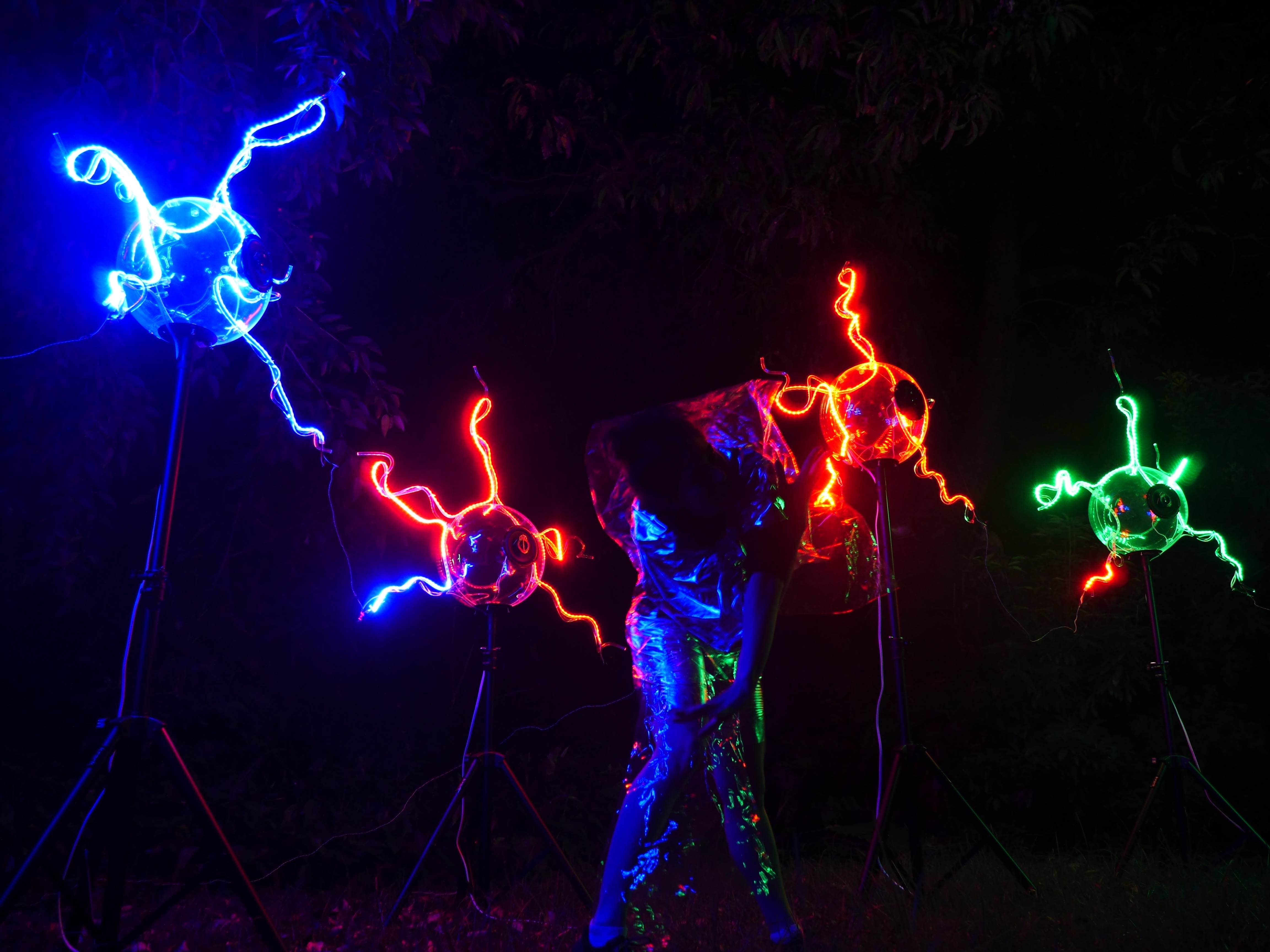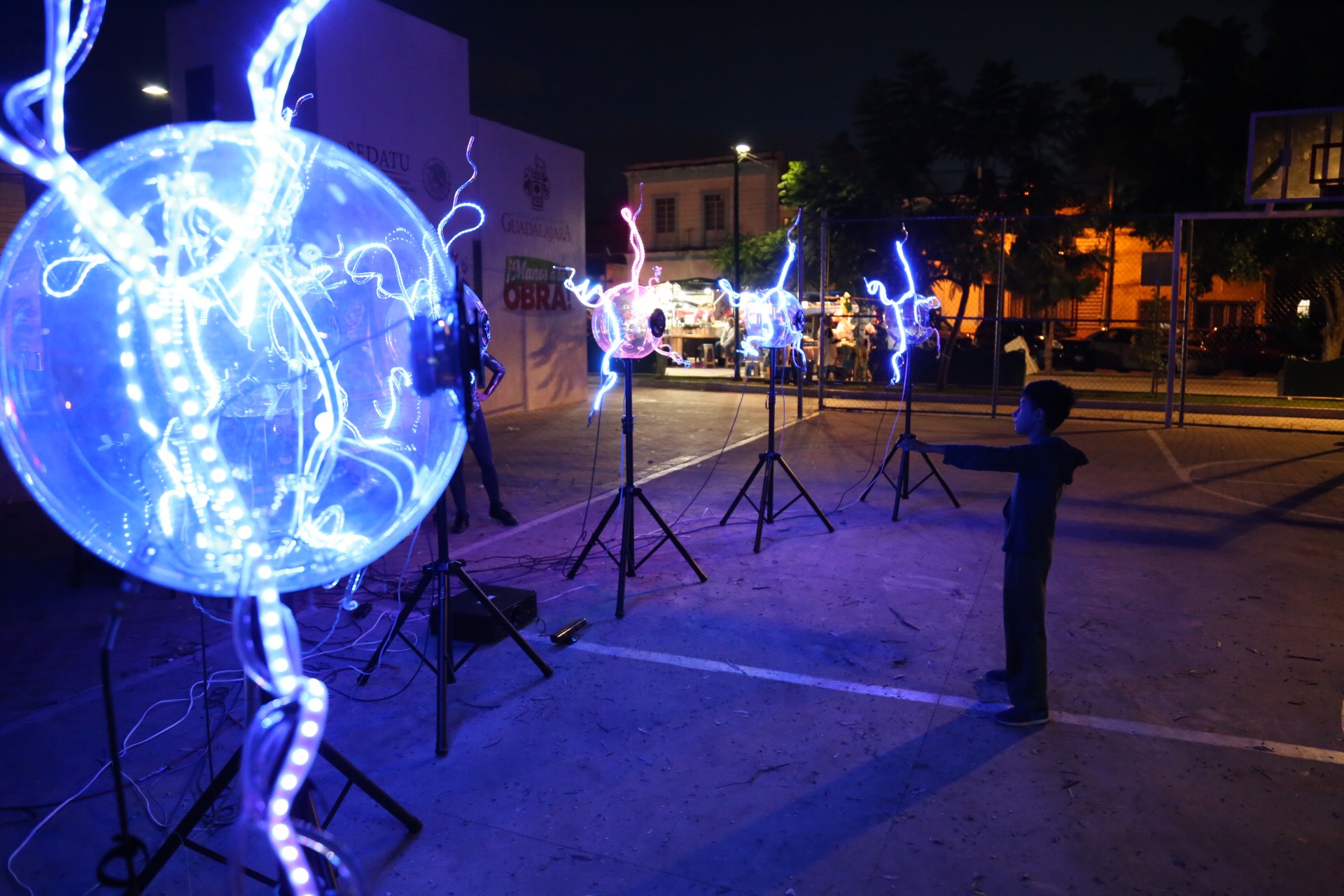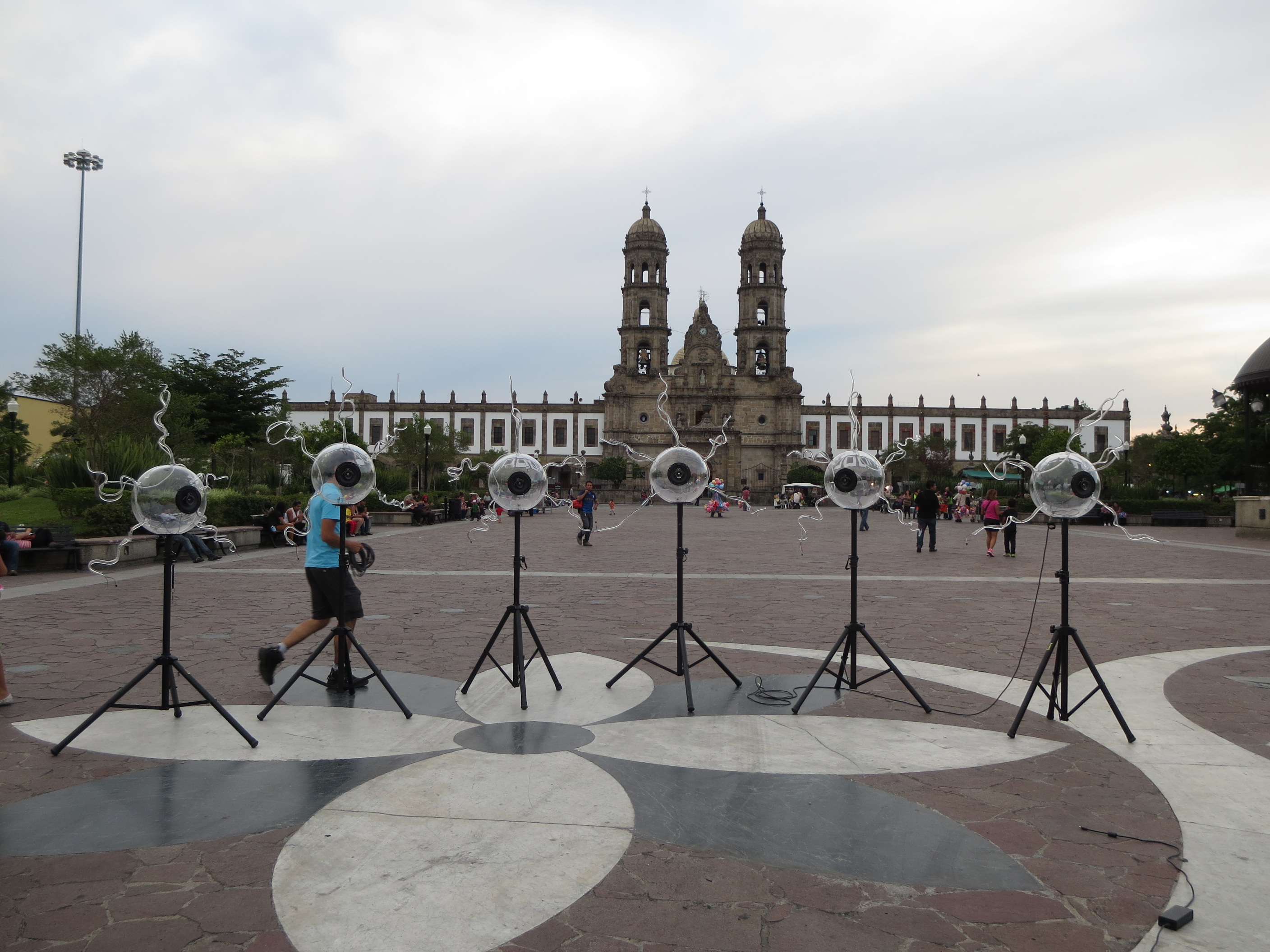 Instalación itinerante para espacios públicos que integra sonido, luz y movimiento en una experiencia interactiva.